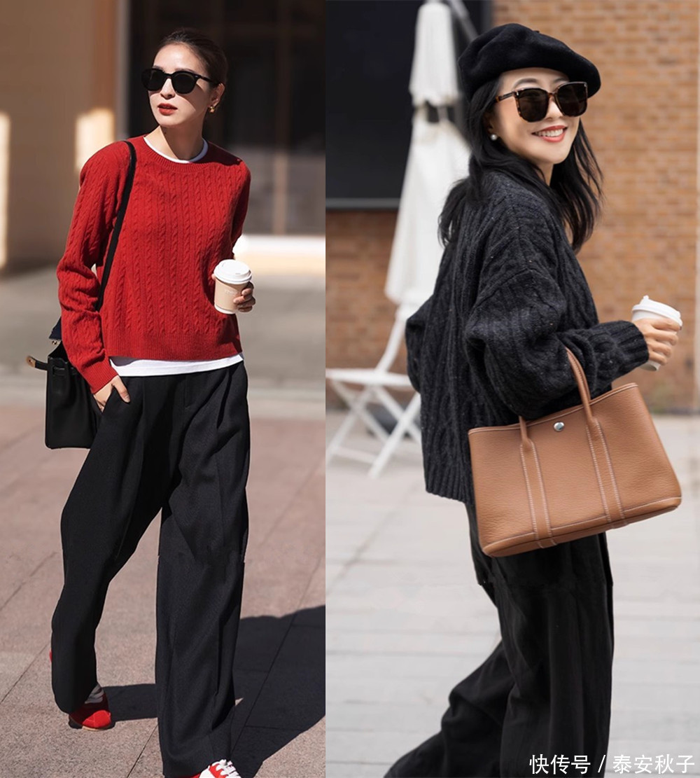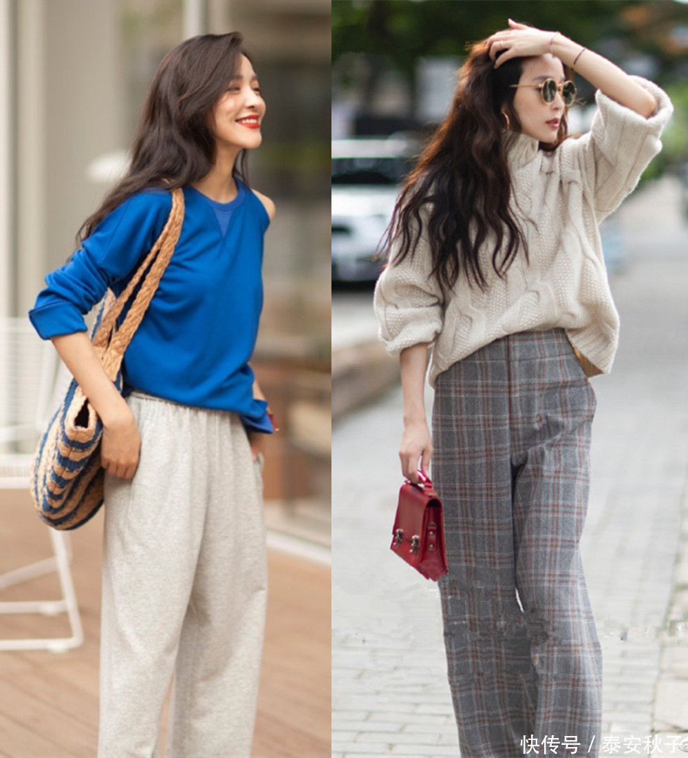 年过四十岁的中年女生,应该偏向舒适、实用和时尚结合,可以用微宽松的毛衫,内搭撞色针织衫,与高腰修身裤,能够遮住我们身材的不足,带来显瘦的感觉。